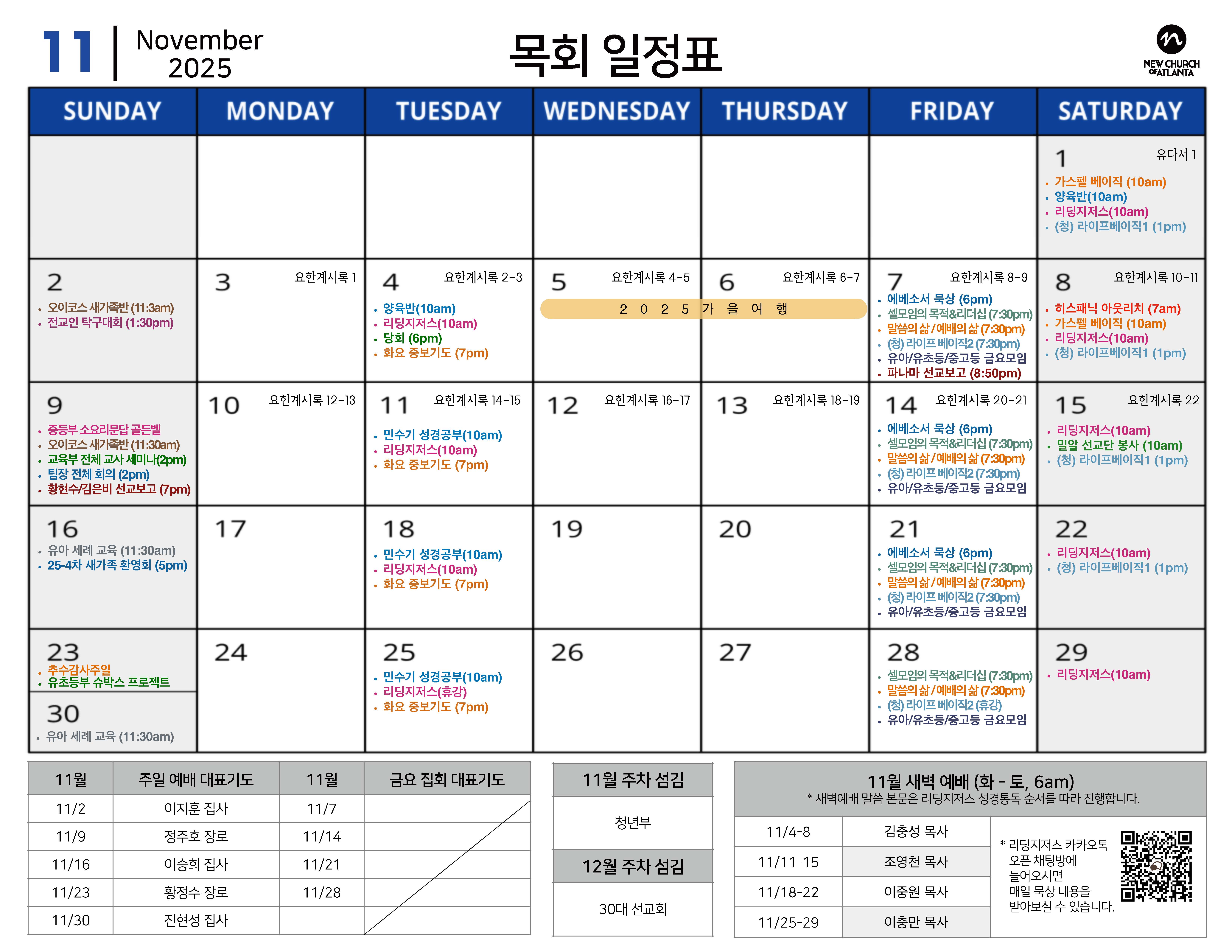 2025년 11월 목회일정표